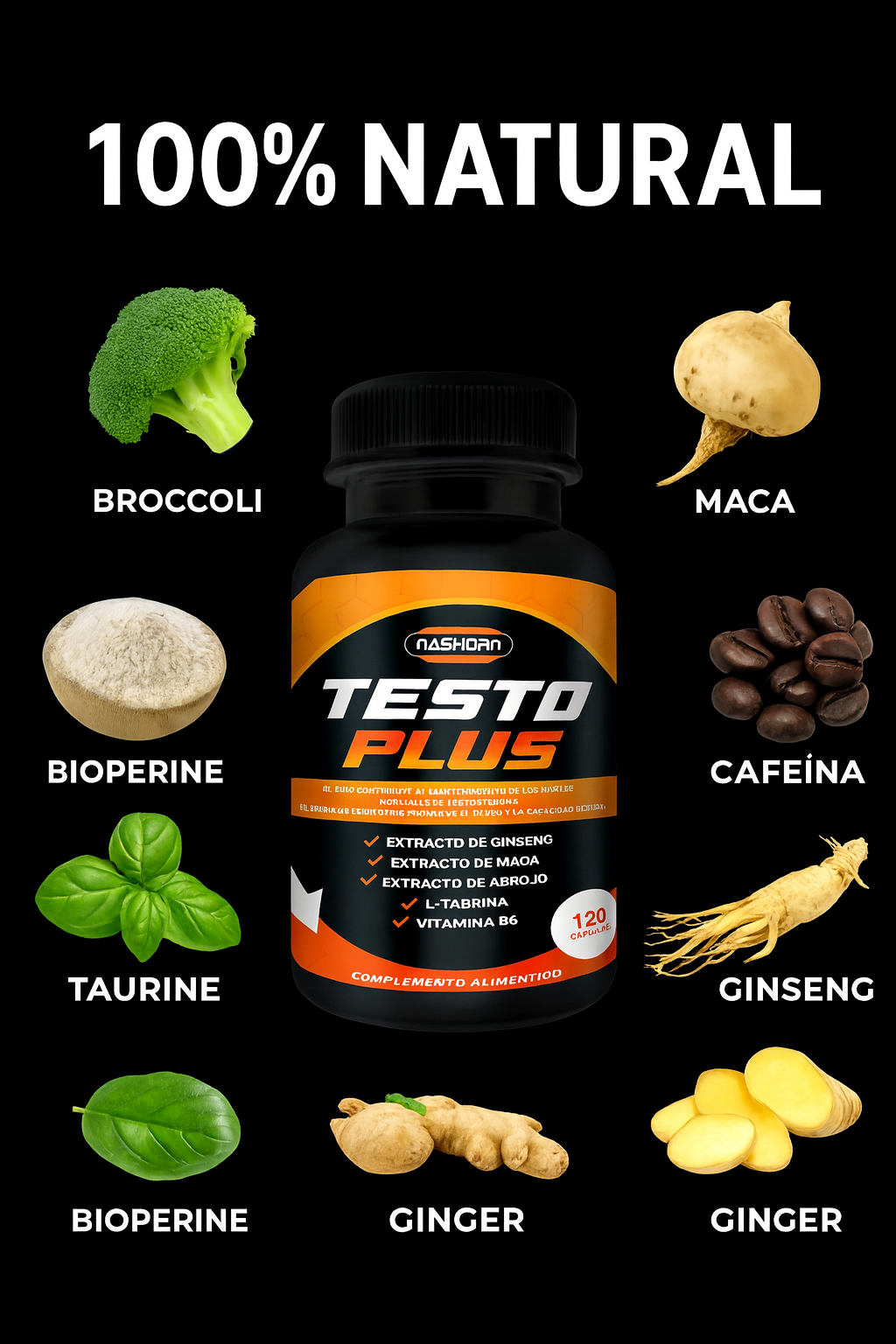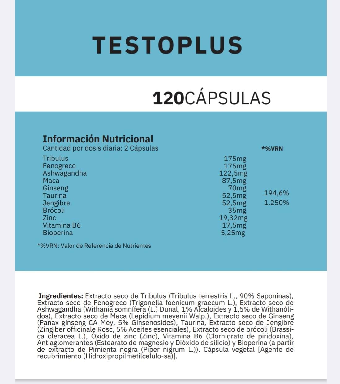 No. Está formulado con ingredientes naturales como ginseng, maca, tribulus, L-taurina y vitamina B6. No contiene hormonas ni químicos agresivos.